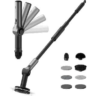 The HOTO Flexi Electric Spin Scrubber is a versatile cleaning tool designed to remove soap scum, grime, and buildup from tiles, bathtubs, and shower walls. It works as both a handheld scrubber and a long-handle cleaner thanks to its adjustable extension rod. With multiple brush attachments and two speed settings, it’s suitable for tackling everyday bathroom cleaning as well as tougher stains.